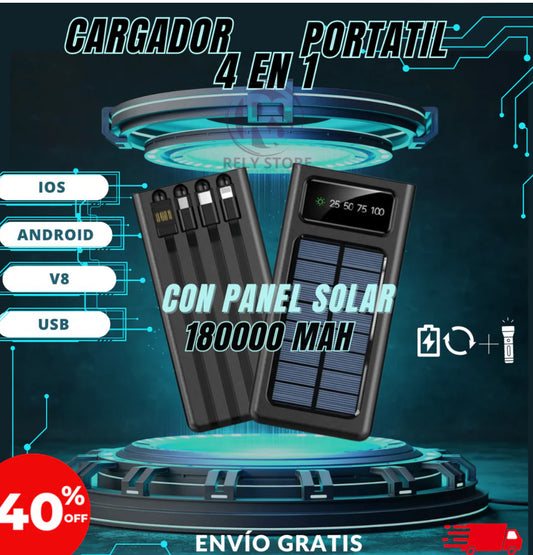CARGADOR PORTATIL 4 EN 1 CON PANEL SOLAR