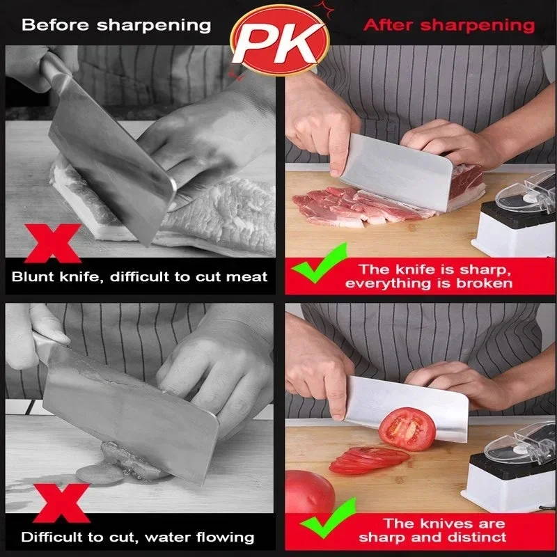 Desde cuchillos de chef hasta de sartén, nuestro afilador eléctrico es la solución versátil que necesitas en tu cocina.
