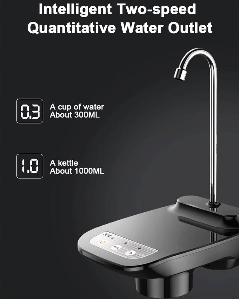 Equipado con una batería recargable integrada de 1800 mAh que se carga a través de un cable Micro USB. Esta batería proporciona una autonomía de funcionamiento de 30 a 40 días o la dispensación de aproximadamente 4 a 6 botellas de agua de 5 galones con una sola carga completa, lo que lo convierte en un dispositivo energéticamente eficiente.