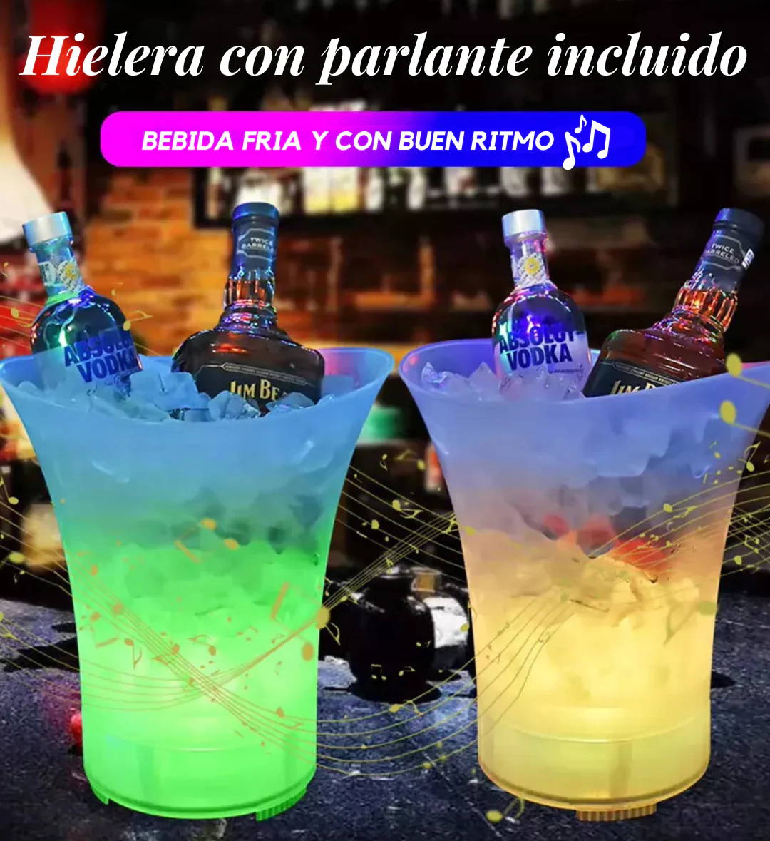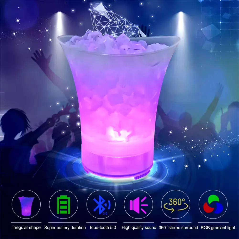 Una tecnología LED permite que tu cubeta brille en una variedad de colores, adaptándose perfectamente al ambiente y haciéndola el centro de atención en cada evento.