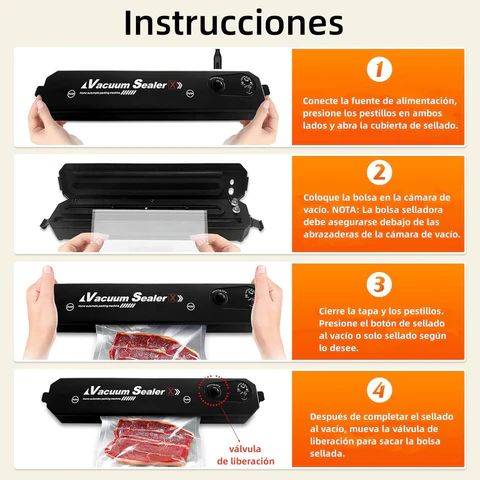 - Las máquinas selladoras al vacío de alimentos con un solo toque funcionan y son fáciles de usar, abra el protector automático del sellador de alimentos y coloque la bolsa en la cámara de vacío, cuando la luz roja se vuelva verde nuevamente, se complete el sellado y garantice su seguridad. - -- La máquina ahorradora de alimentos con un solo toque puede sellar solo o aspirar y sellar sus bolsas.