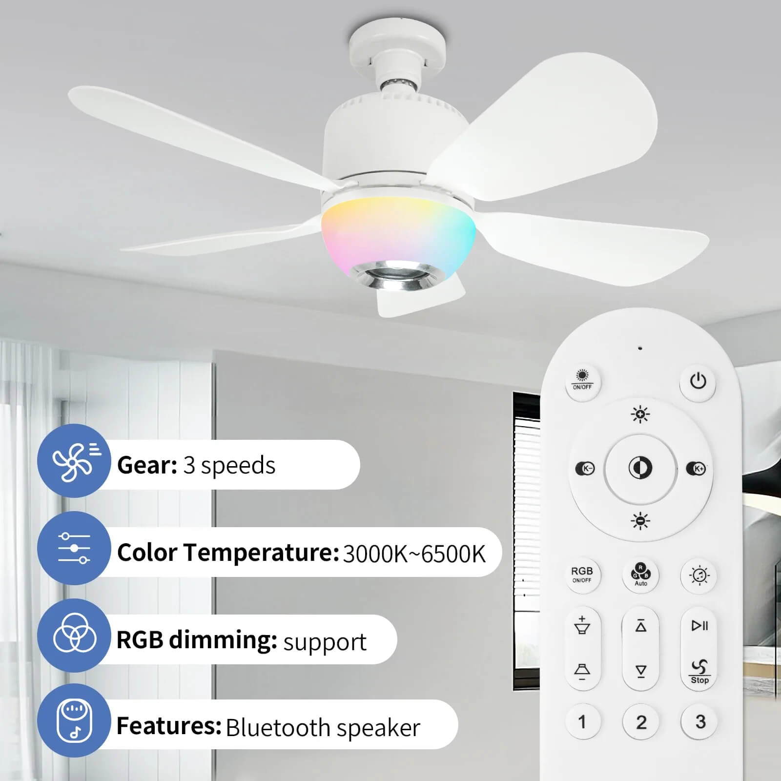 El Ventilador SmartLux RGB combina ventilación potente, iluminación inteligente y diseño moderno, todo en un solo producto premium.