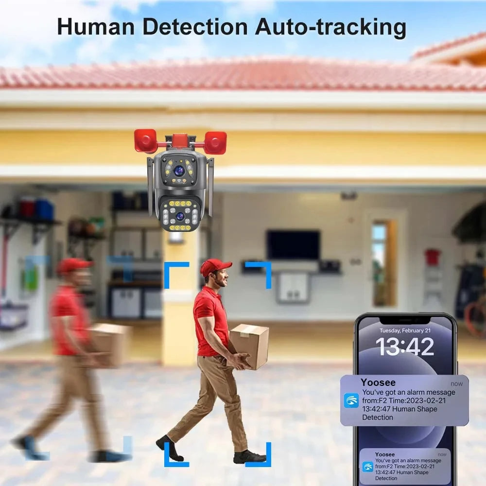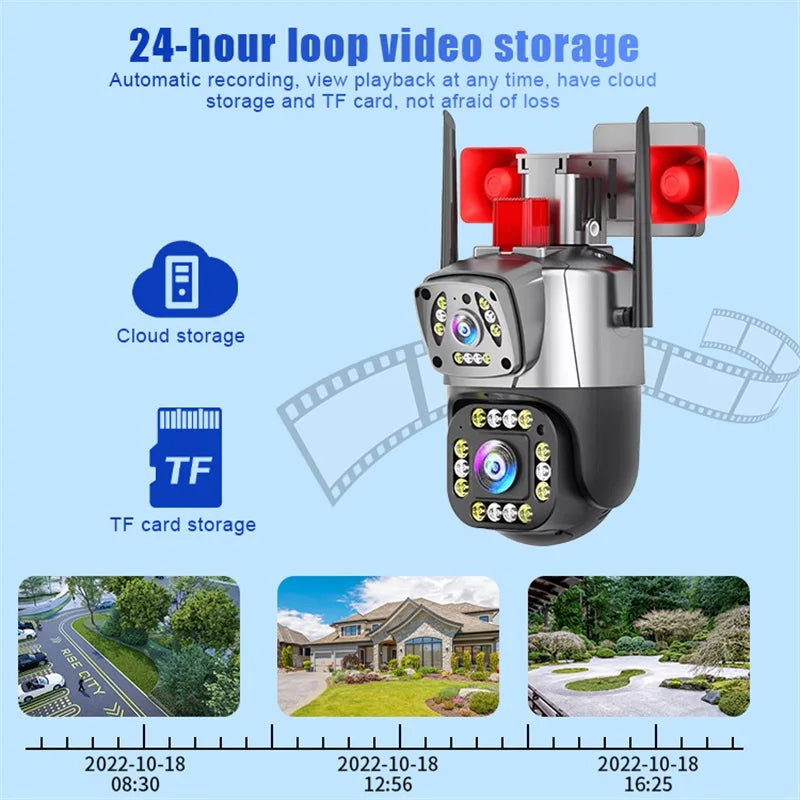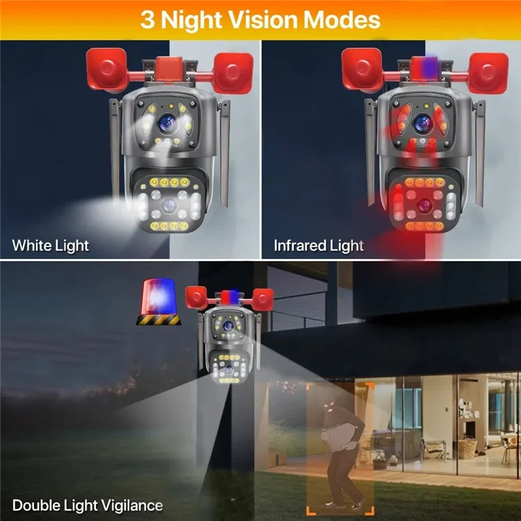 CÁMARA DOBLE LENTE CON BOCINA Y SIRENA