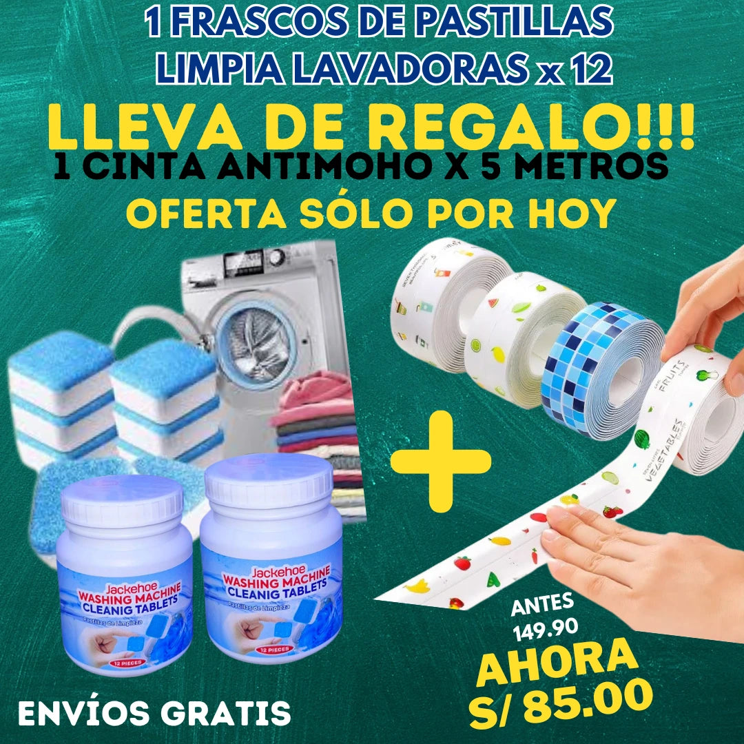 PASTILLAS LIMPIA  LAVADORAS  Frasco x 12 pastillas + CINTAS ANTI MOHO X 5 METROS