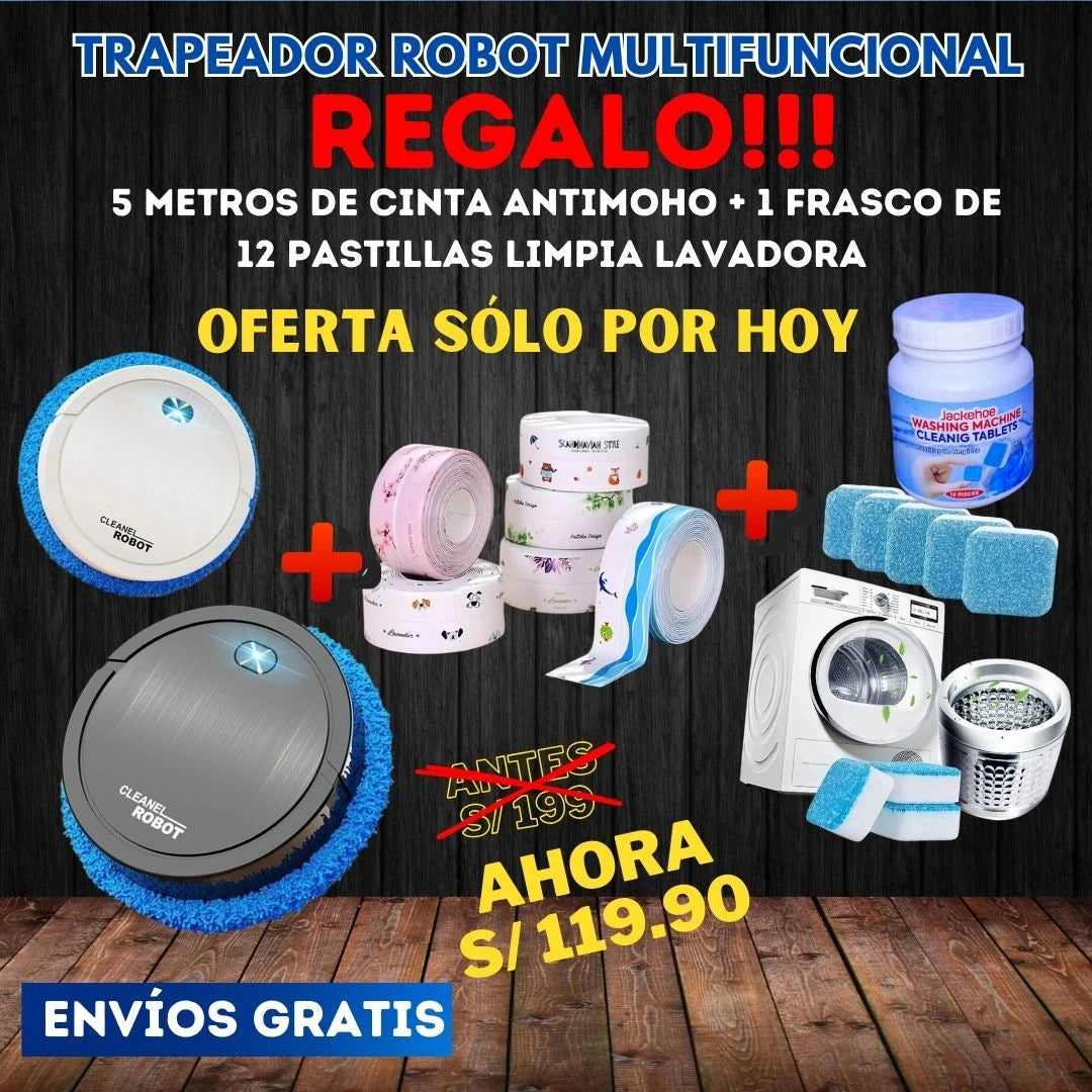 ROBOT TRAPEADOR MULTIFUNCIONAL+CINTA  ANTI MOHO+PASTILLAS LIMPIA LAVADORA